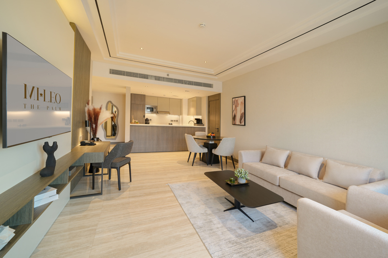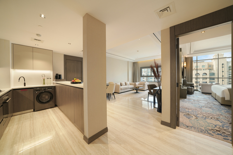 نقدّم لك جناحاً أنيقاً مؤلّفاً من غرفة نوم واحدة، يوفّر إطلالات رائعة على أفق المدينة ويرسي أجواء مريحة تضاهي أجواء المنزل. هنا، تبدأ صباحك بفنجان قهوة من مطبخك، وتتلقّى مكالماتك في غرفة المعيشة، ثم تنعم ليلاً بنوم هانئ بين أحضان غرفة نومك الهادئة. يضمّ الجناح غسالة، وتلفازاً ذكياً بحجم 55 إنشاً، ومساحات تخزين مدروسة تجعل الإقامة الطويلة أكثر سهولة وراحة. وبمساحاته المتناغمة وألوانه الدافئة، يمنحك أجواء مثالية للعمل والاسترخاء في نخلة جميرا.